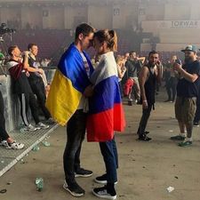 But what about us, can’t we do more? Shouldn’t we all wrap ourselves in the flag of our nations like those two lovers and put our foreheads together, let our hearts touch each other? Not be onlookers in the background but join in. In everything we do. Any where, any time.